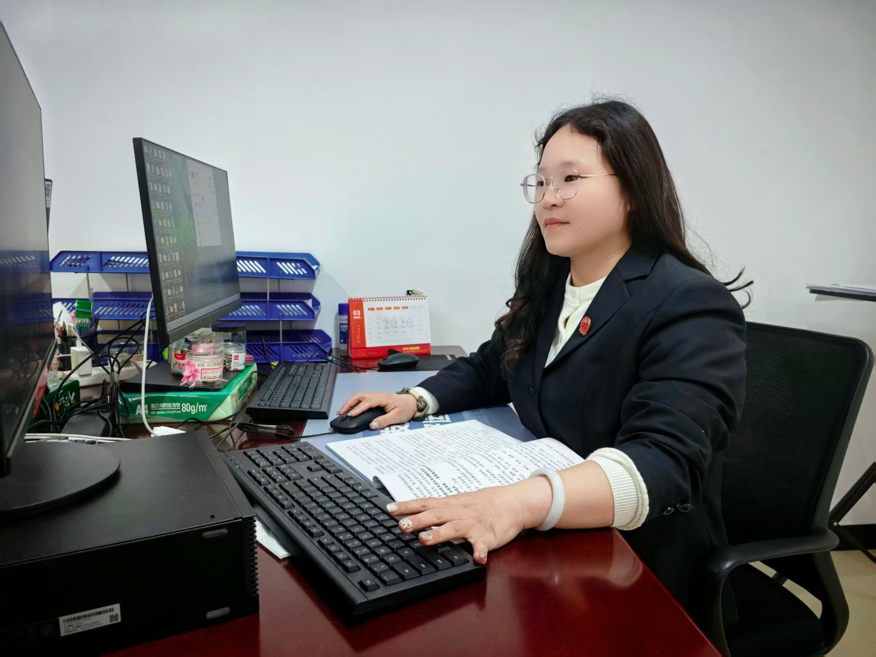 人事工作纷繁复杂,千头万绪,职务调整、职级晋升、人事档案归档、办理退休…每项业务都关系干警切身利益,容不得一丝马虎和大意,该同志始终坚持原则、一丝不苟,面带微笑。2025年,共办理职级晋升3批次23人次,协助完成3名新录用公务的招录工作,完成2名员额法官遴选入额,归档1500余份人事档案,办理工资福利调整百余人次。她常说:“能让一线法官安心办案,就是人事干警最大的价值。”该同志用实际行动诠释了新时代法院政工干警的忠诚与担当。